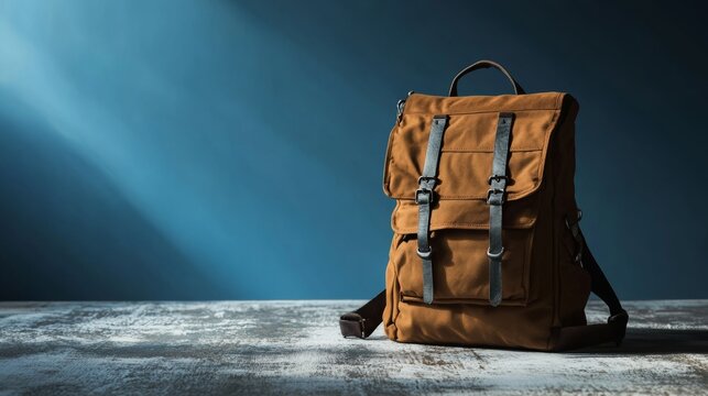 A minimalist travel backpack packed and ready for adventure, representing the modern nomadic lifestyle, Travel and adventure scene