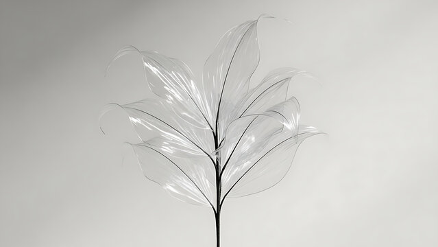 Transparent leafy plant stem with clear leaves on gray background