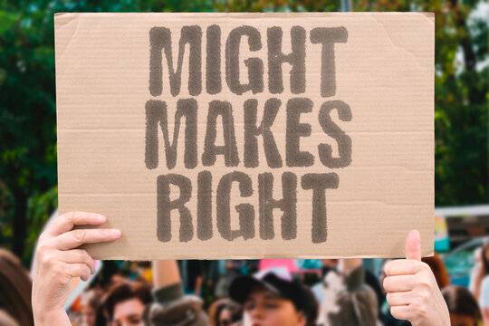 "Might Makes Right" Strength determines outcomes over rules today. FORCE. DOMINANCE. CONFLICT. RULE. STRENGTH.