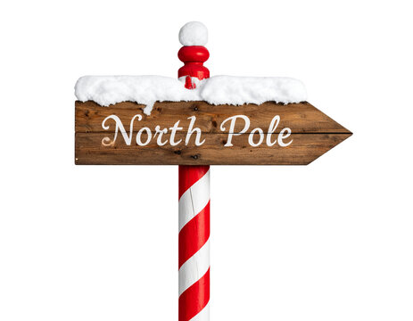 Classic North Pole Signpost with Red and White Striped Pole, isolated on a transparent background.