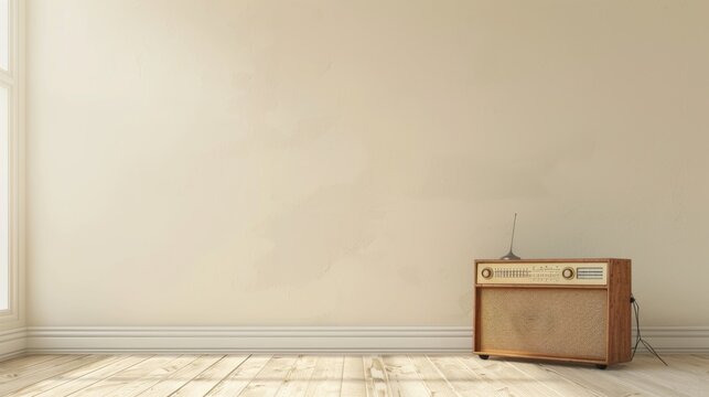 Nostalgic vintage tv with flickering static in moody gallery