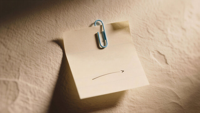 A handwritten note pinned with a blue clip, casting a soft shadow on a textured wall.
