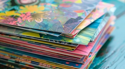 A stack of vibrant and playful notecards adorned with a unique handdrawn illustration adding a charming touch to any correspondence.