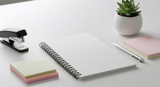 Flat-lay of neatly organized office supplies on a clean surface with one-third of the frame empty for creative text or overlay designs.