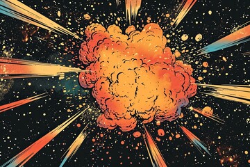 Comic style boom effect with lit bomb icon