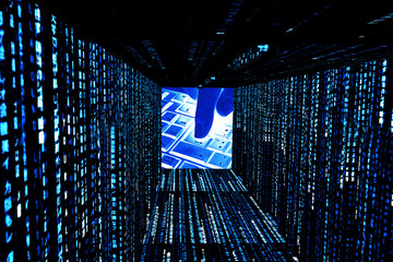 Binär Code Tunnel - Mit Bokeh und Tastatur- Futuristisch