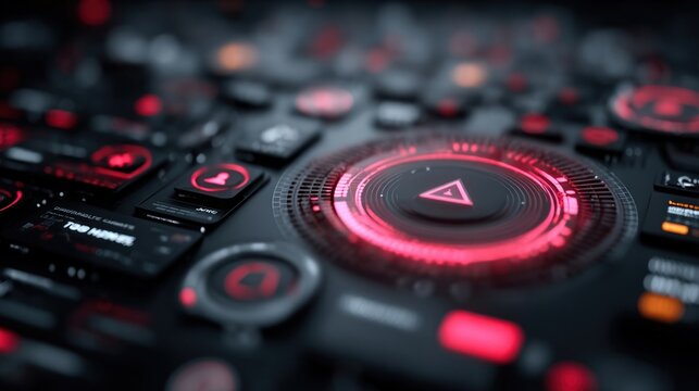 Digital Threat Alert Interface with Cybersecurity Icons and AI Warnings on Futuristic Background