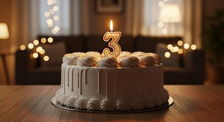 3d render, neon linear number three and colorful cloud glowing with pink blue neon light, abstract fantasy background