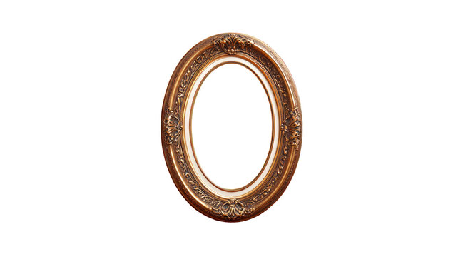 An empty antique oval gold frame features a 3d metallic golden design with a round silver ring symbol and a zero number sign isolated on a white background for a wedding