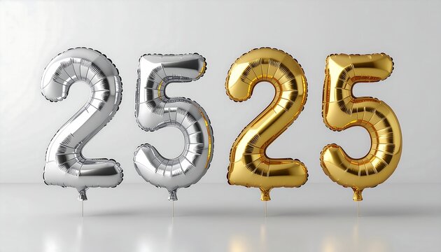 Shimmering gold and silver metallic helium balloons proudly display the numerical sequence 2525, perfect for marking a future date or a special anniversary milestone celebration