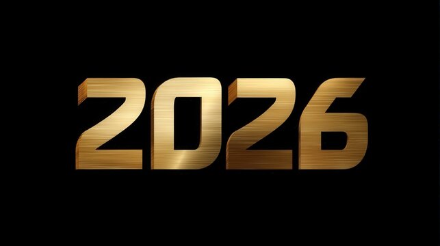 Shiny gold numbers 2026 against a black background