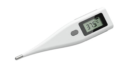 Digital Thermometer Displaying 37 Point 5 Degrees Isolated on Transparent Background Medical Equipment for Fever Diagnosis and Health Monitoring