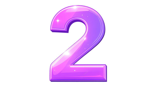 Glossy number two, shaded from pink to purple with white highlights, against a stark black background