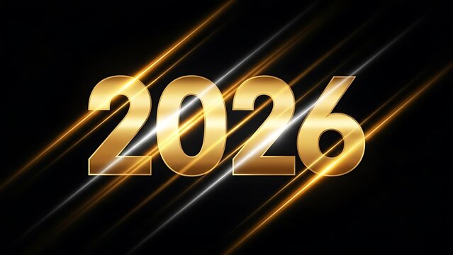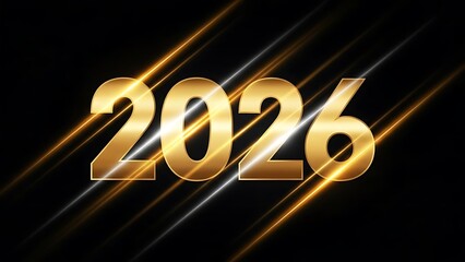 A striking visual representation displays the year 2026 in bold golden lettering against a dynamic backdrop of illuminated streaks and lines