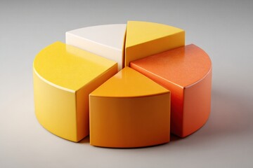 3D pie chart with yellow and orange segments for data visualization and business presentations on a transparent background with high quality
