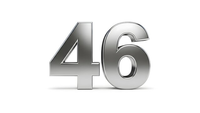 Silver Number Forty Six 46 in 3d Metallic Style on White Background