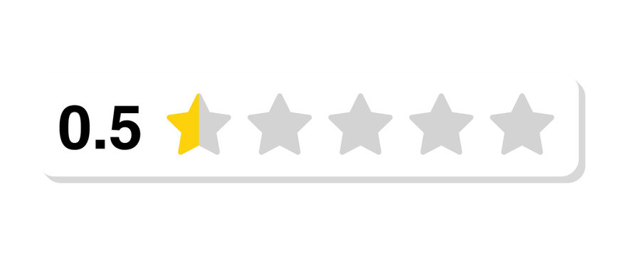 Rating bar with numeric label 0.5 in flat white rectangular style, half star customer review feedback score for poor satisfaction, PNG with transparent background