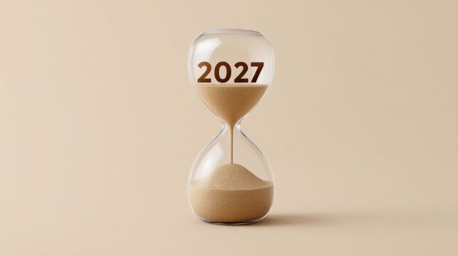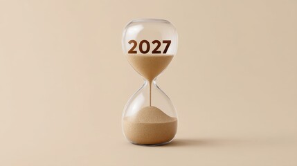 Elegant Hourglass Marked with the Year 2027, Representing Time Flowing and Life's Transition in a Minimalist Design for Creative Projects
