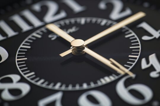 A detailed view of a black and gold watch face, showcasing its intricate design and colors, Clock shape with dollar signs instead of numbers symbolising time value of money, AI Generated