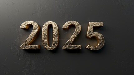 Golden numerals reading 2025 are prominently displayed on a dark surface, representing the upcoming year with a sleek and contemporary aesthetic