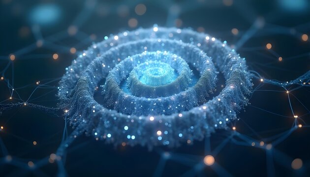 Close up of a sphere with spiral design, smooth 3D illustration, white biomechanical details, spiral with glowing numerical lines