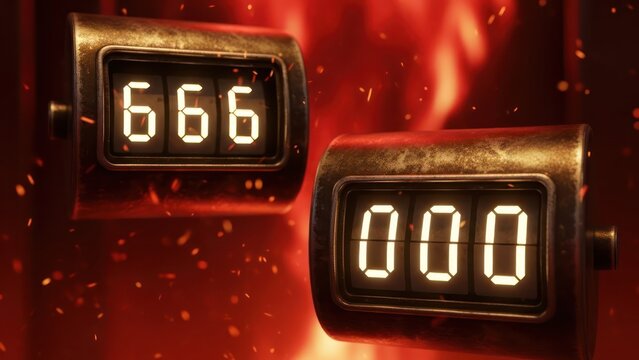 Golden numerical display showing figures in a dark setting with radiating light and sparks