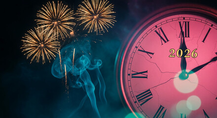 Frost-covered 2026 numerals hovering above north atlantic tracing red neon route