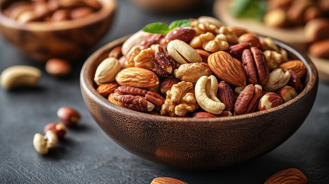 a mixture of different types of nuts rich in protein fiber and healthy fats can be consumed in snacks and as a snack