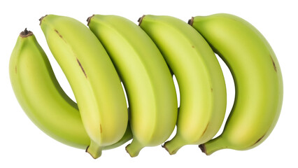Isolated Plantains arranged for culinary purposes and nutritional value, raw and unripe