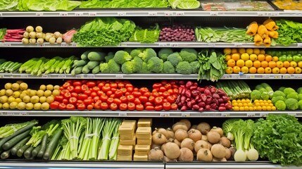 Explore a vibrant selection of fresh produce and whole foods at your local market Discover an array of colorful fruits, crisp vegetables, and nutritious ingredients A grocery store aisle brimming