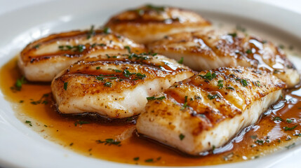Healthy salmon meal with mashed potatoes and fresh salad on white plate