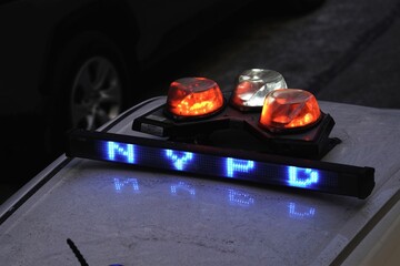 Closeyp of NYPD lightbar atop a police car in Manhattan, New York City