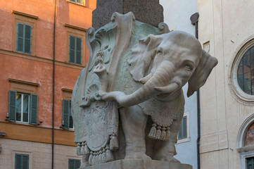 Elephant obelisk, Obellisco della Minerva landmark sculpture in Rome, Italy