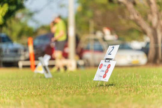 Instruction sign in a dog obedience competition at the Royal Darwin Show 2025. Northern Territory, Australia.
