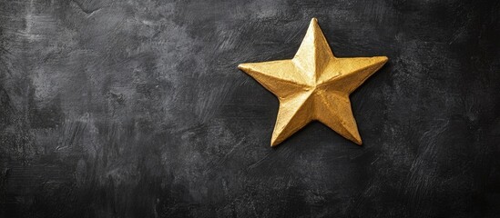Gold star on textured black chalkboard backdrop with ample blank space for creative text insertion or announcements