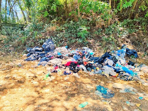 Rome, Italy - August 8, 2025, detail of a section of the public parking lot of the large Regina Elena hospital complex, San Gallicano, IFO, with an obscene pile of abandoned garbage.