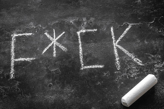obscene word written in chalk on a black background