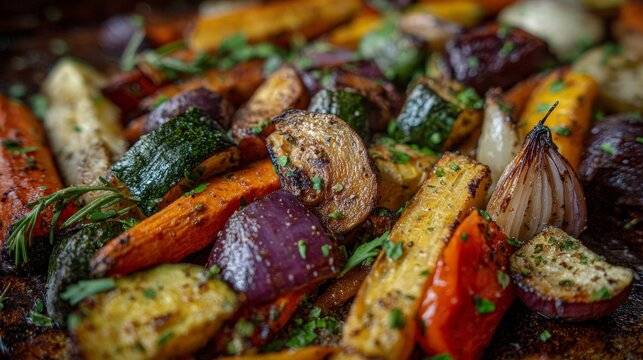 Roasted vegetable medley kitchen food photography indoor close-up culinary delight
