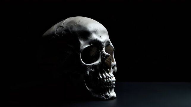 Human Skull on Dark Surface - A Study in Mortality and Anatomy.