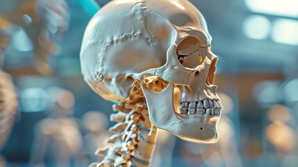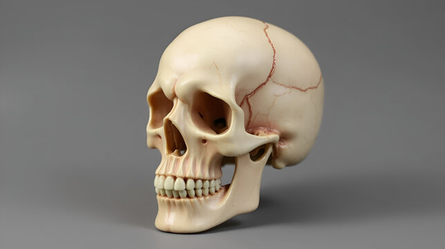 Detailed View of a Human Skull Anatomy Showcasing Cranial Structure Against a Neutral Background