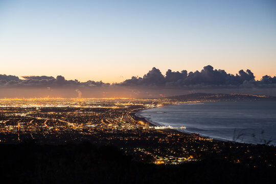 Futuristic holographic globe over ocean coastline with circuit overlay