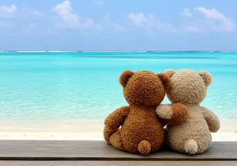 Peaceful couple embracing on scenic balcony overlooking ocean views