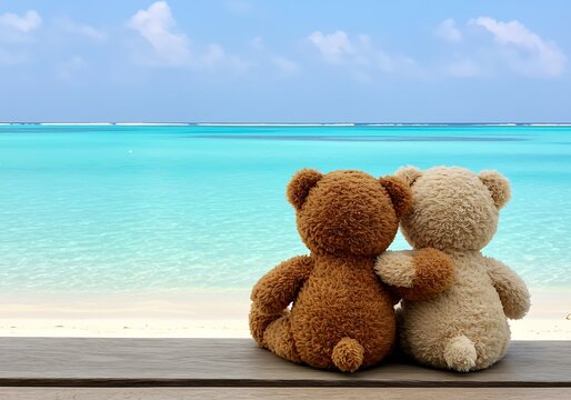 A diverse group of young friends come together in a tight embrace, facing the sea and the horizon. Their different backgrounds blend together in a show of unity and friendship