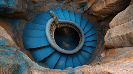 Elegant carpeted spiral staircase with metal railings in luxurious home
