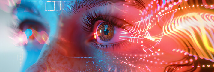 Futuristic digital interface over human eye