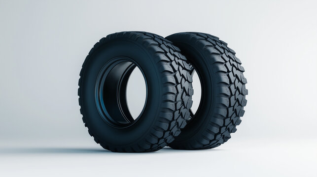 High quality black tires with deep treads, ideal for off road vehicles, showcasing durability and strength. Perfect for automotive enthusiasts and professionals.