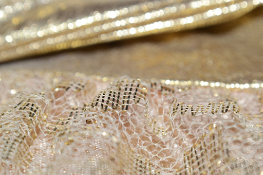 Resting red velvet santa hat wrapped in gold lace and warm fairy lights