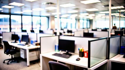 Cubicle Area Blur - An office cubicle area with partitions and computers, blurred for effect.