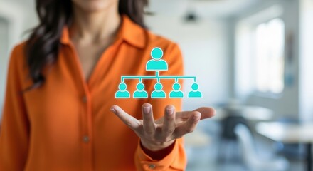 An abstract digital representation of an organizational chart, illuminated by soft daylight, highlighting the structure of a team in a modern office setting