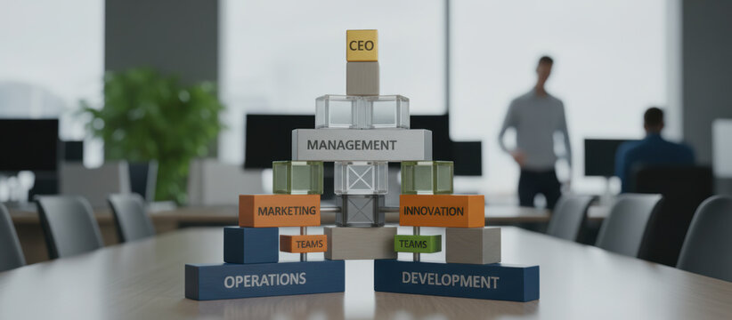 Management pyramid structure teamwork collaboration hierarchy office leadership strategy innovation development